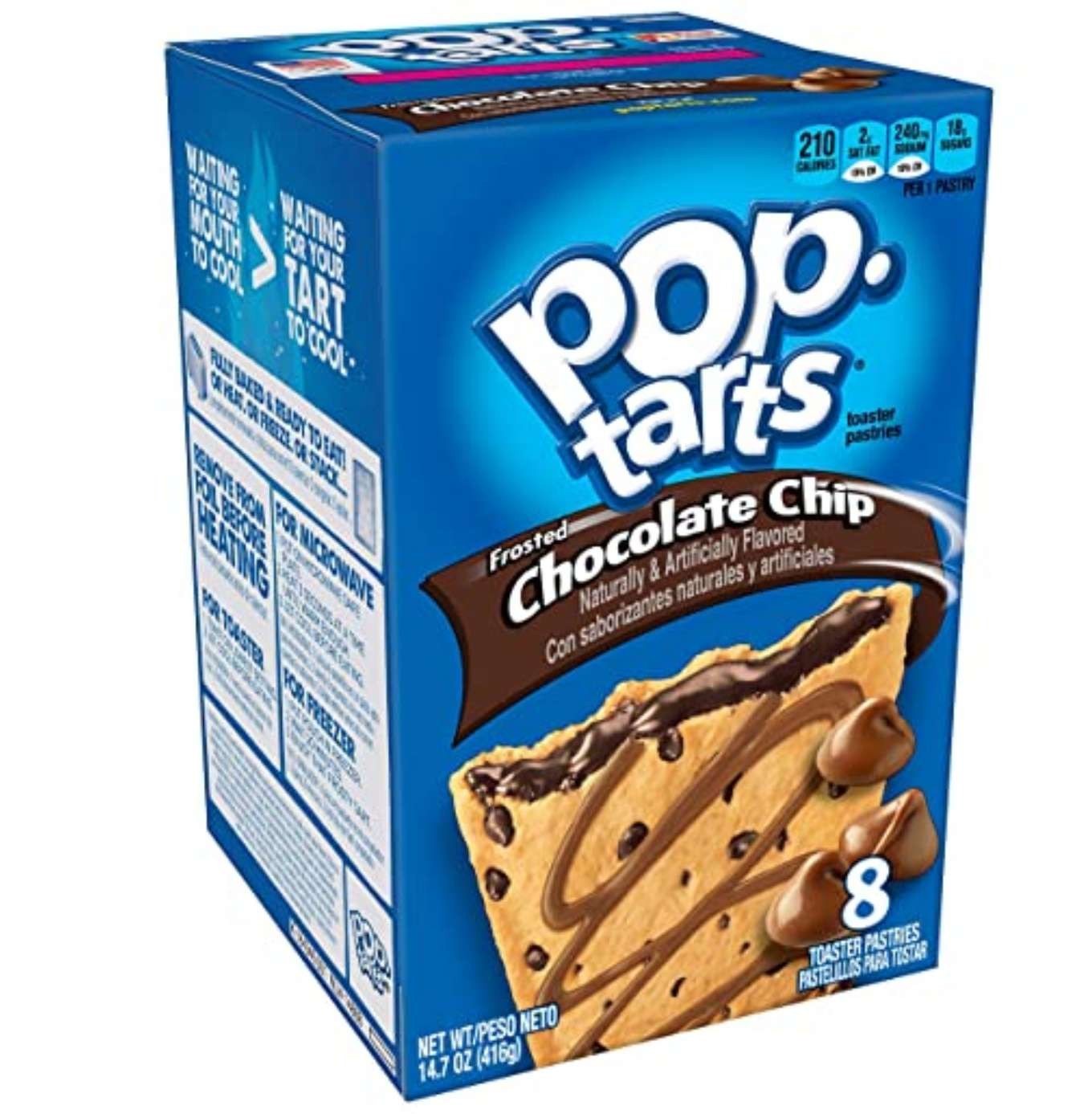I biscotti americani Pop Tarts sono arrivati con un nuovo gusto e un nuovo formato! Il gusto è quello degli american cookies o "Chocolate Chips" come sono chiamati in america, che sono i classici biscotti grandi al burro con fragranti gocce di cioccolato. Fatti conquistare dal gusto dei Kellogg's Pop Tarts Chocolate Chips! Consigliamo di scaldarlo per pochi istanti al microonde o tostapane per godere al massimo.
