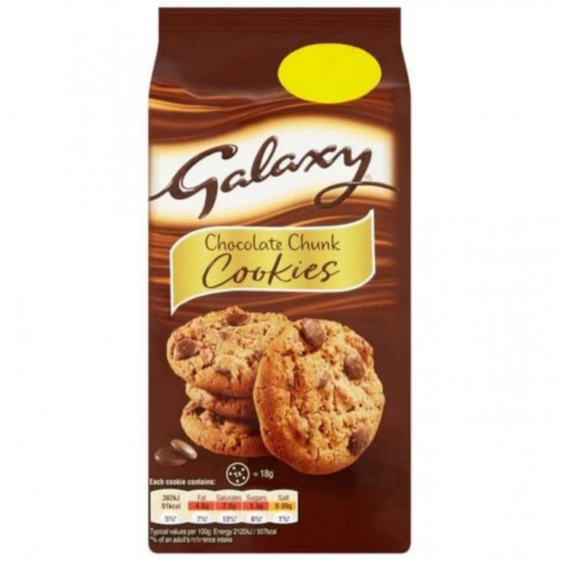 Ingredienti: Farina di frumento sbiancata(farina di grano, carbonato di calcio, ferro, niacina, tiamina), pezzi di cioccolato al latte (zucchero, burro di cacao, latte scremato in polvere, masssa di cacao, proteine di siero del latte, grassi di palma, siero in polvere, massa di cacao, lattosio e proteine del latte, grassi di palma, siero in polvere, grassi del latte, lecitina di soia, estratti di vaniglia), sciroppo di raffineria parzialmente invertito, siero di latte permeato, agente lievitante E500-E503, aromi, sale.
