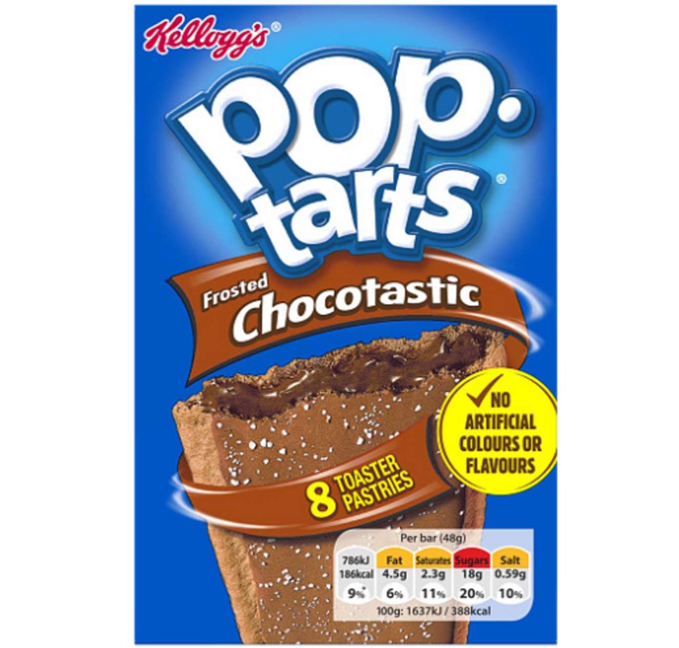 I Kellogg's Pop Tarts Frosted Chocolate sono sbarcati su Cibo USA e sono uno snack dolce e goloso davvero unico. Perfetto per iniziare la giornata al meglio o per una pausa snack indimenticabile. Il suo ripieno cremoso al cioccolato e la glassa morbida e zuccherata renderanno l'assaggio indimenticabile.