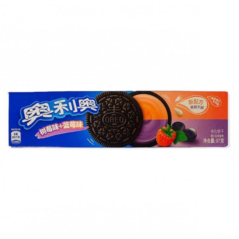 Gli iconici biscotti Oreo si vestono di frutta con la versione Raspberry & Blueberry: un incontro goloso tra la croccantezza del classico biscotto al cacao e una crema dal gusto fresco e fruttato di lamponi e mirtilli.