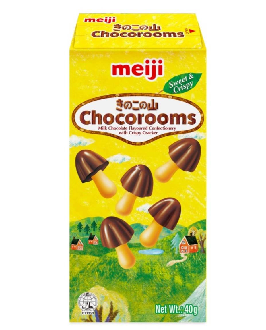 Meiji Chocorooms – Milk Chocolate Flavoured Confectionery with Crispy Cracker: Scopri il perfetto equilibrio tra croccantezza e dolcezza con i Meiji Chocorooms.