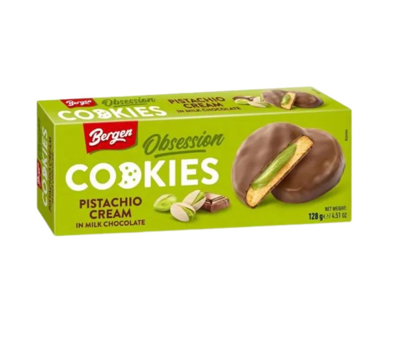 Bergen Obsession Pistachio Milk Chocolate sono biscotti golosi che uniscono una base friabile alla delicatezza del cioccolato al latte e al gusto ricco del pistacchio. L'equilibrio tra la dolcezza del cioccolato e la nota intensa e aromatica del pistacchio crea un'esperienza di gusto avvolgente e raffinata. Ideali per una pausa indulgente in qualsiasi momento della giornata.