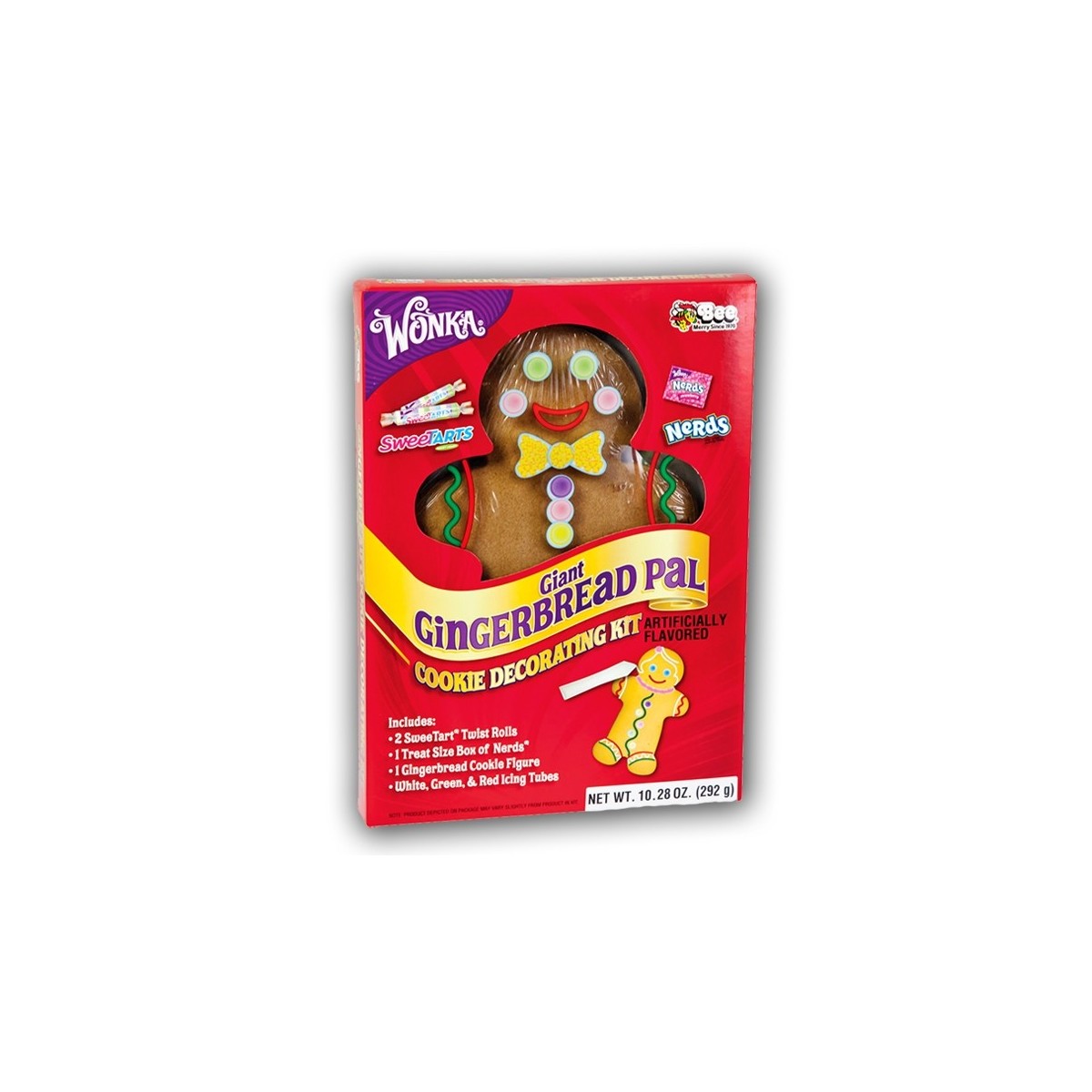 Ricrea l'atmosfera dal Natale delle favole con questo grandissimo biscottone a forma di Omino di Pan di Zenzero tipico delle feste natalizie americane! All'interno della scatola sono anche presenti 3 tubetti di glassa bianca, rossa e verde che potrai utilizzare insieme ai 2 pacchetti di caramelle Sweet Tarts e 1 pacchetto di caramelle Nerds (sempre inclusi nella confezione) per decorare a mano il tuo personale Gingerbread Man. Divertente da utilzzare anche con i bambini per rendere il tuo natale più creativo ed emozionante proprio come piace a Willy Wonka!