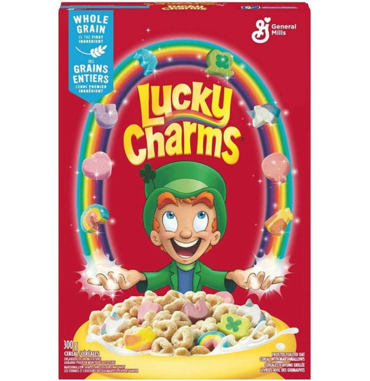 C'è poco da dire sui cereali Lucky Charms della General Mills. Anche se sono un prodotto d'oltreoceano e non sono venduti in Italia tutti li conoscono per la croccantezza dell'avena integrale che si fonde con la morbidezza dei piccoli marshmallows dalle più bizzarre forme e colori. Immaginate risvegliarvi con questa delizia...sarà festa ogni mattina!