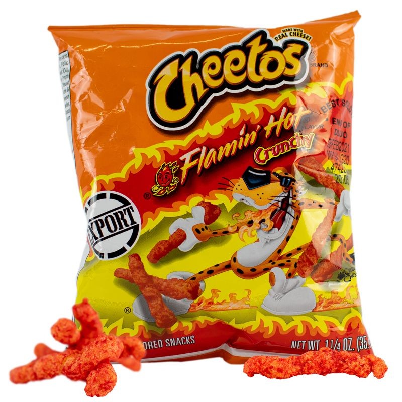 Un “must” degli snack americani sono le Cheetos crunchy Flamin' Hot. Queste patatine della Frito Lay sono le più vendute negli Stati Uniti e se è così ci deve essere un motivo. Niente a che vedere con le altre marche di patatine presenti nei nostri supermercati. Queste patatine si presentano di un colore rosso fuoco e anche nella tua bocca avrai questa sensazione! Sentirete il gusto ricco del mais tostato e piccante. Comodo Pacco monoporzione.
