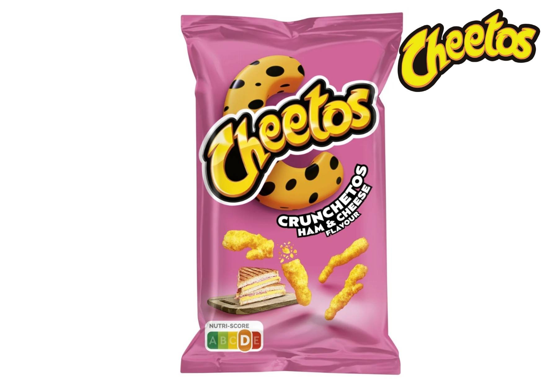 I Cheetos Crunchetos Ham & Cheese sono snack di mais cotti al forno. Il gusto è una deliziosa combinazione di prosciutto e formaggio e sono molto croccanti.