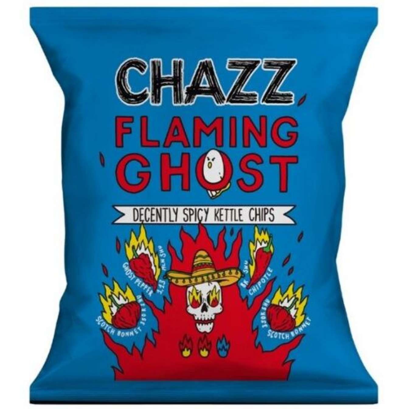 Eccole arrivate anche da noi su CIBOUSA! Si trattano delle patatine più in voga sul mercato negli Stati Uniti... Patatine Chazz al gusto di peperoncino Ghost. Queste patatine stuzzicheranno sicuramente le tue papille gustative.