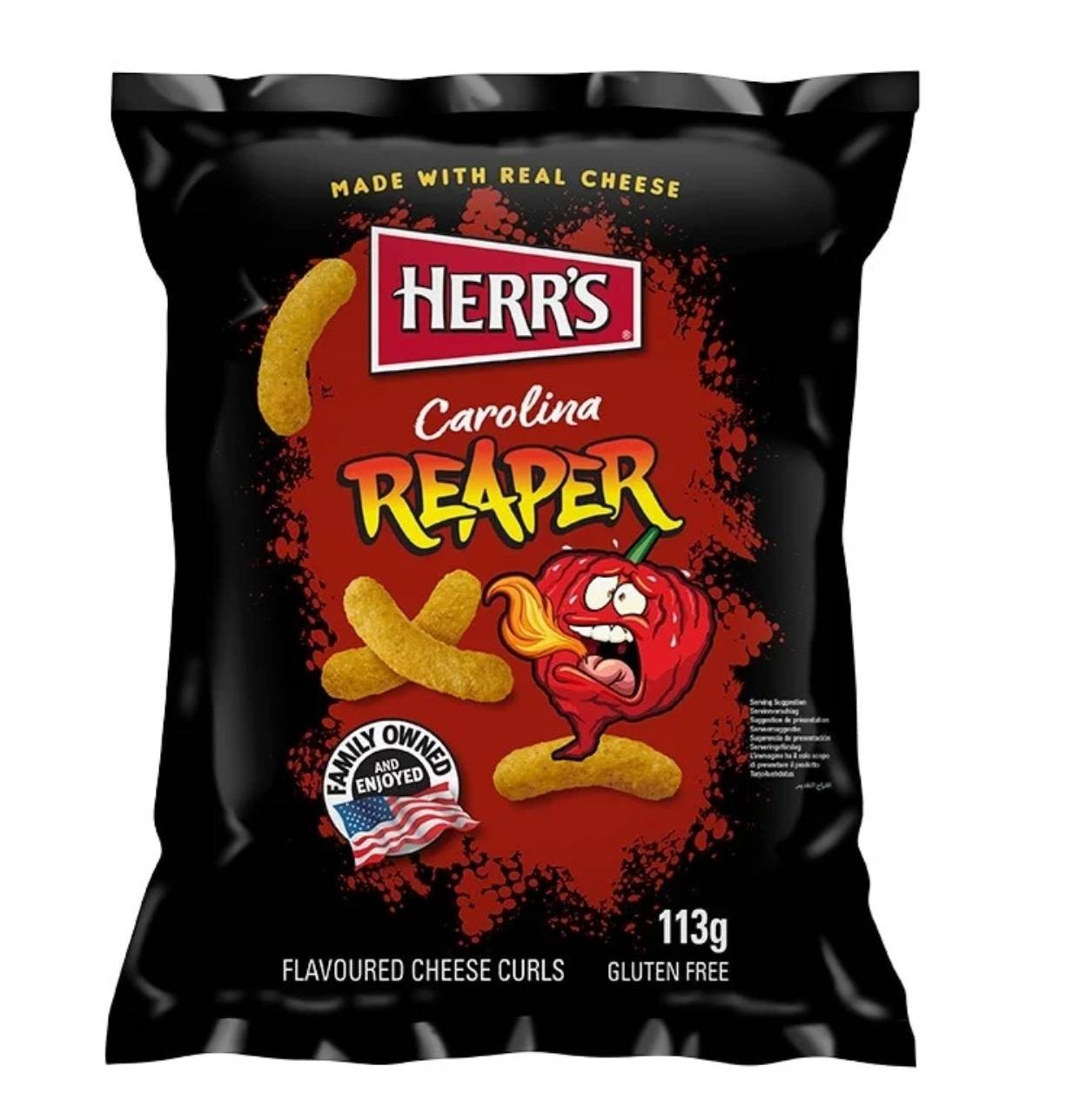 Prova anche tu gli Herr's Carolina Reaper Extra Hot Cheese Curls. Questi deliziosi snack salati e super piccanti, sono il perfetto mix tra il gusto cremoso del formaggio con il calore intenso del famoso peperoncino Carolina Reaper. Assolutamente da provare!