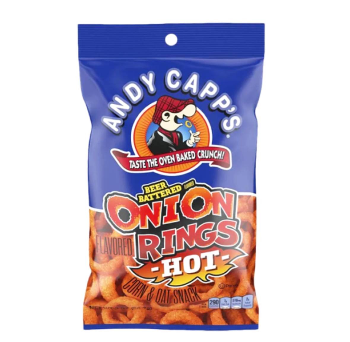 Andy Capp's è un personaggio bizzarrissimo dei fumetti americani popolare in tutto il mondo! Adesso ha deciso di omaggiare del suo nome queste spassosissime patatine in puro stile yankee!!!!! Le Andy Capp's Onions Rings Hot sono a forma di anello e sono molto piccanti. Il tutto a base di patate e mais e.....Croccano che è una meraviglia! Prova anche le altre varienti che ti offre Cibo Usa!