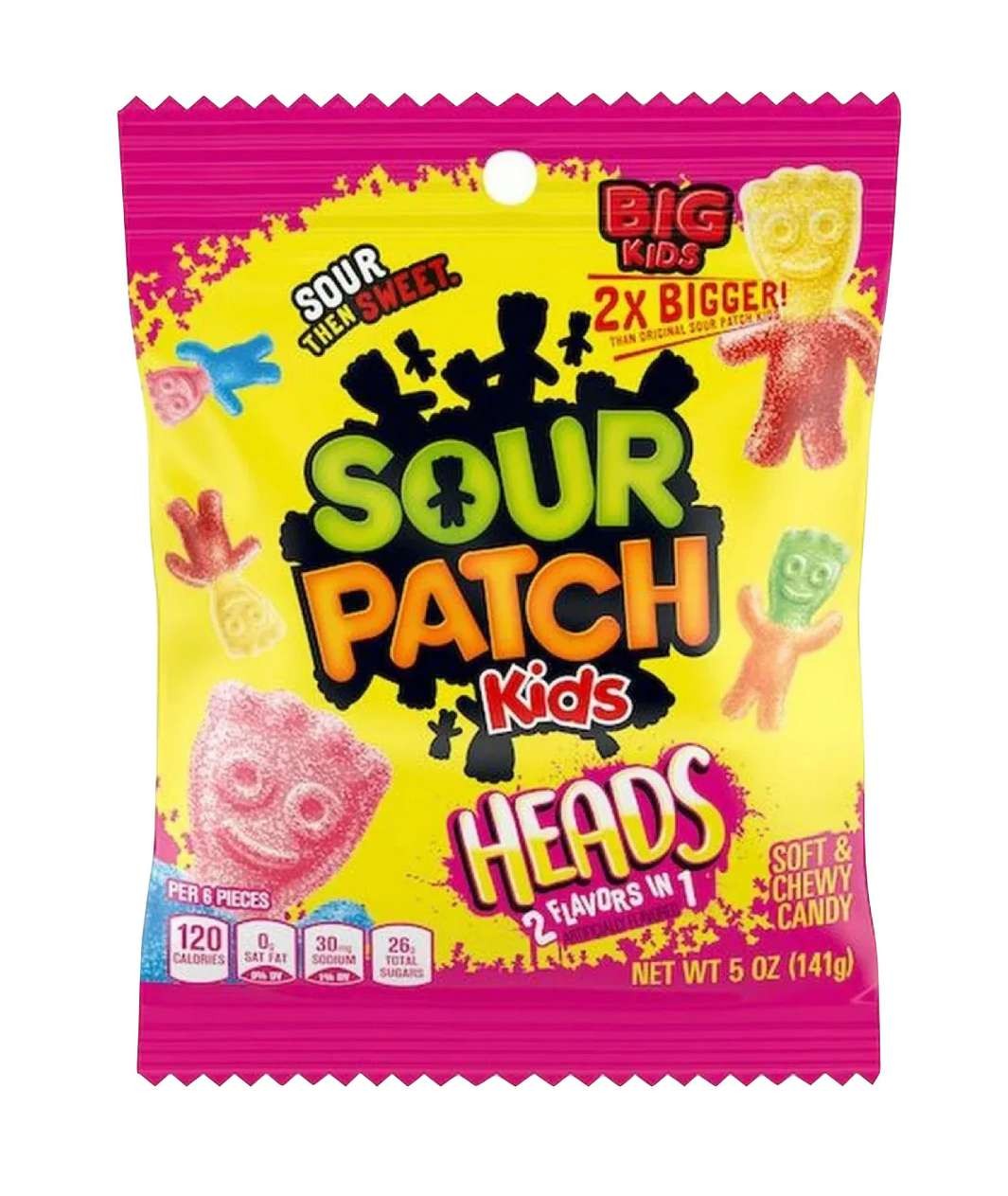 Le caramelle SOUR PATCH KIDS Heads sono un gustoso snack da asporto adatto ai bambini. Dal sapore aspro e dolce, queste caramelle hanno una consistenza morbida e gommosa. Da provare assolutamente!