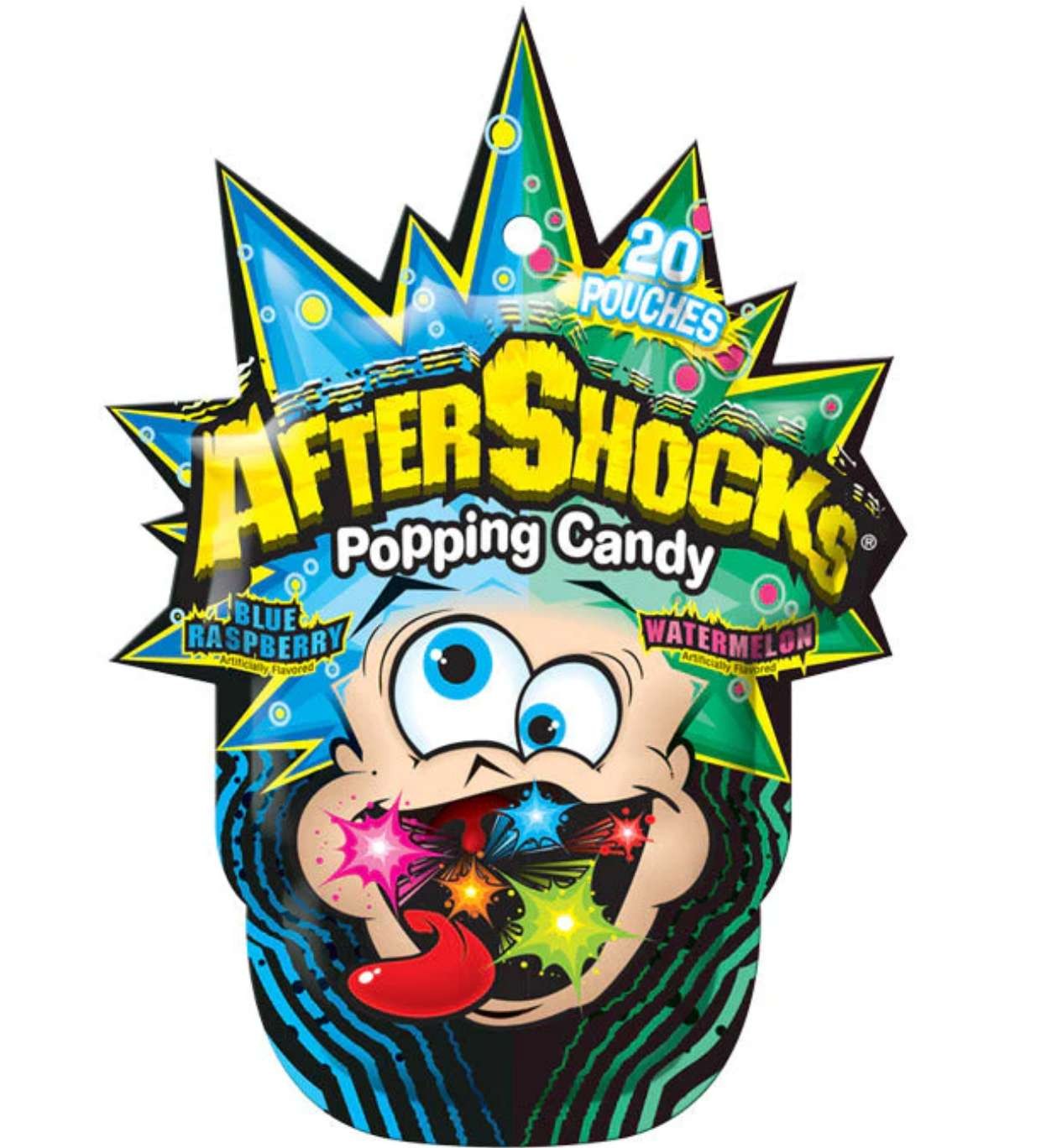 AfterShocks farà vibrare le tue papille gustative con intensi sapori fruttati. In ogni confezione ci sono 2 gusti di caramelle scoppiettanti da scoprire: i gusti sono lampone blu e anguria.
