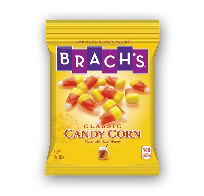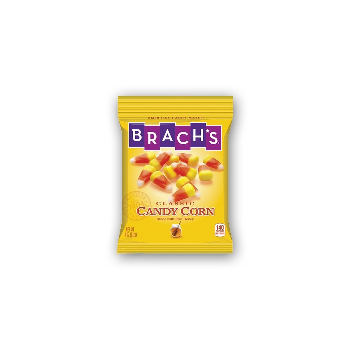 In america i Candy Corn sono le caramelle più conosciute in assoluto. Si usano soprattutto per festeggiare Halloween ma ormai sono così popolari che vengono prodotte in tutti i periodi dell'anno. Sono delle caramelle a forma di chicco di mais dai colori arancio, giallo e bianco con un dolce sapore di miele e una consistenza tra il morbido e il gommoso. Prova oppure regala qualcosa di davvero tipico in formato maxi! (pacco da 311 grammi). La marca Brach è la più conosciuta per la produzione dei Candy Corn.