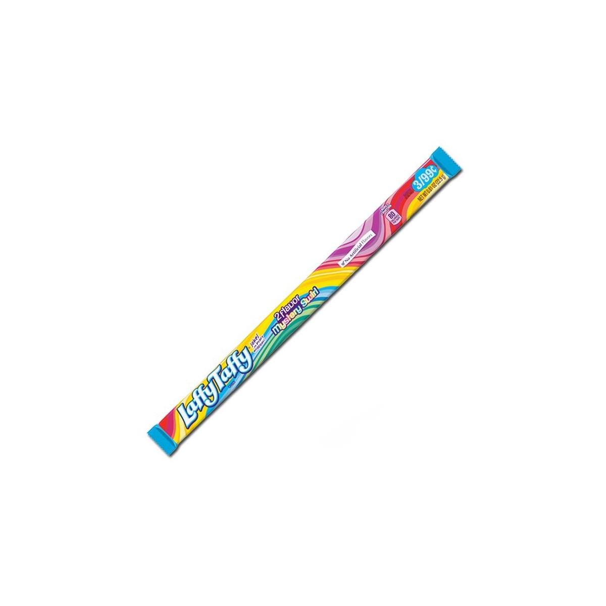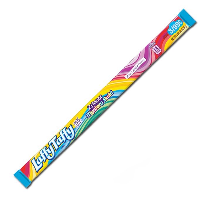Queste particolari caramelle Wonka Laffy Taffy si chiamano "Mystery Swirl" ovvero in italiano "Turbine Misterioso". Vuoi sapere di che gusto si tratta? Di certo non saremo noi a dirtelo se no di che mistero è! Queste caramelle sono molto popolari tra i bambini americani, non solo per la forma allungata da poter deformare a piacimento, ma anche per la consistenza morbida ed elastica. Fatti travolgere anche tu da questo turbine e divertiti a scoprire il gusto a sorpresa!