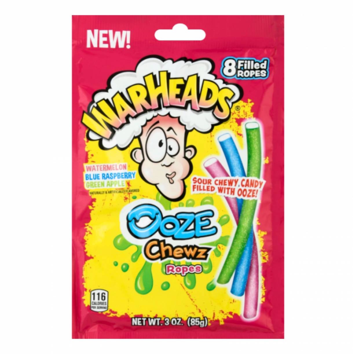 Assapora le gustosissime Warheads Ooze Chewz Ropes. Queste caramelle gommosissime dal sapore fruttato ti stupiranno per la loro nota aspra e liquida. All'interno del pratico pacchetto, troverai diversi gusti come mela, fragola e anguria. Provale tutte!