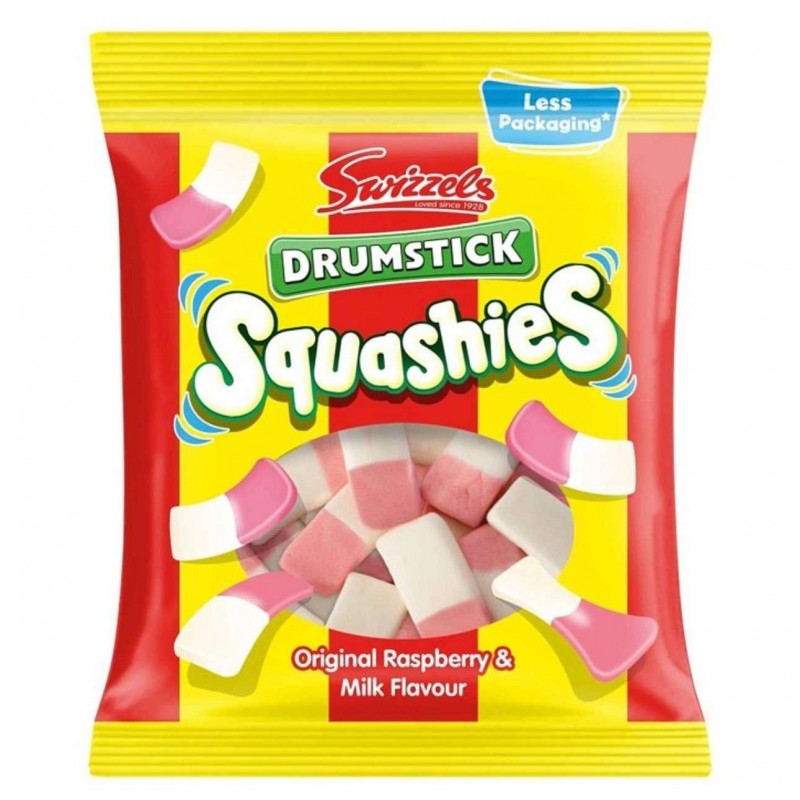 Squashies Original sono delle caramelle introvabili, ma finalmente sono qui su Cibo USA. Sono gommose e richiamano il classico gusto dolce e fruttato di Drumstick. Prova i gusti autentici si questo snack come lampone e latte. Che aspetti? Provale!