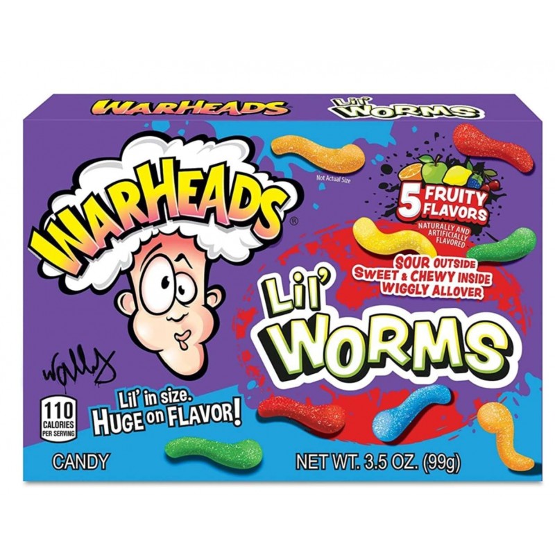 Le Warheads Lil Worms Theater Box sono le caramelle gommose che stavi cercando. La loro forma di vermetti dal gusto aspro e fruttato ti farà di certo impazzire. Ogni morso unisce la dolcezza e l'acidità di queste caramelle uniche dal sapore intenso. Provale prima che finiscano e assapora le cinque varianti presenti nella confezione.