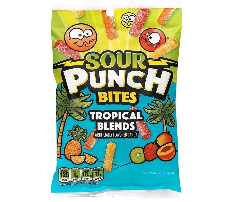 Bocconcini di punch acido – Miscele tropicali Piccoli bocconi dal gusto intenso e tropicale: un mix fruttato e super acidulo che accende il palato ad ogni morso. Audaci, colorati e irresistibili.