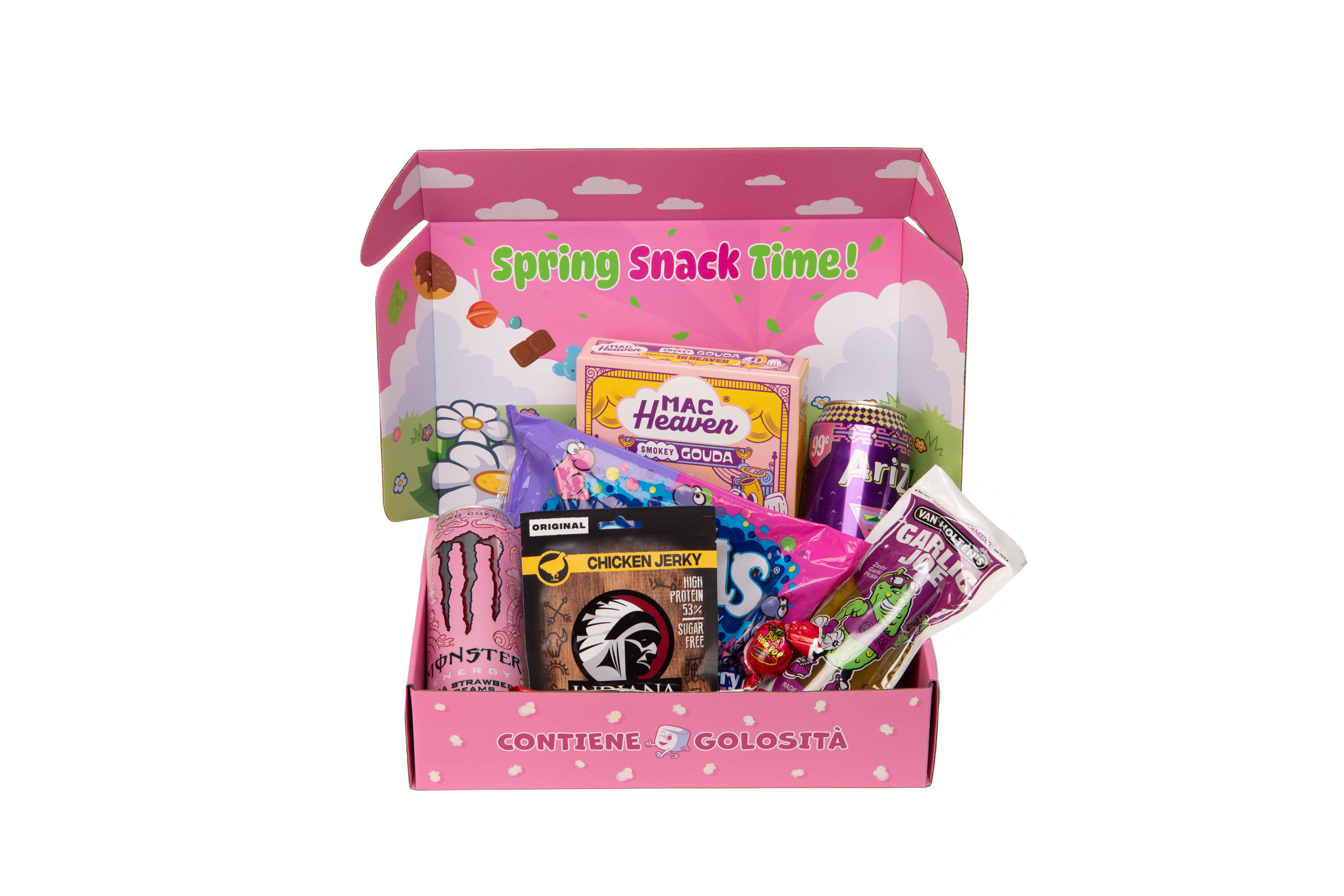 Sta arrivando la primavera e cosa c'è di meglio di una Box Hello Spring di Cibo USA? Dentro troverai ben 20 prodotti per iniziare al meglio una delle stagioni migliori dell'anno. Bevande, barrette, caramelle, insomma, c'è uno snack per ogni gusto in questa coloratissima box. Che aspetti? È l'ora di uno spring snack, ma affrettati perchè queste box vanno a ruba.
