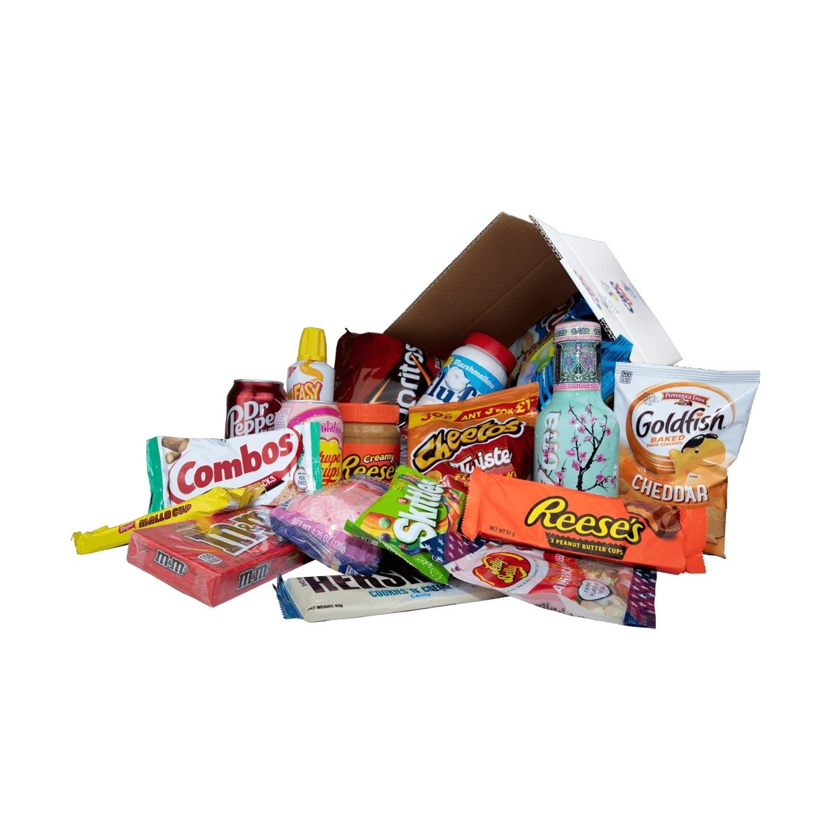 Questa box è per veri appassionati di cibo americano che vogliono scoprire, prodotto per prodotto, i migliori gusti degli U.S.A. quindi divertiti come un matto a spacchettare e ad assaggiare cosa c'è nella Box di cibo americano di Cibo U.S.A.! In questa Box a sorpresa troverete una selezione grande dei migliori snack americani sia salati che dolci + bibite. Nella box sono presenti ben 30 snack americani. La foto è solo esemplificativa e non rappresenta quello che realmente si trova all'interno.