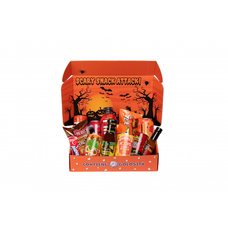 Questa si che è una box che fa paura. La Cibo USA Box Happy Halloween è ciò che ti serve per festeggiare una festività spaventosa come quella del 31 ottobre. Non perderti la super box a tema Halloween e tutti i suoi snack. Festeggia in maniera diversa e dividi con i tuoi amici ben 20 prodotti tra cui caramelle, bevande e tanto altro. Che aspetti? Acquistala ora!
