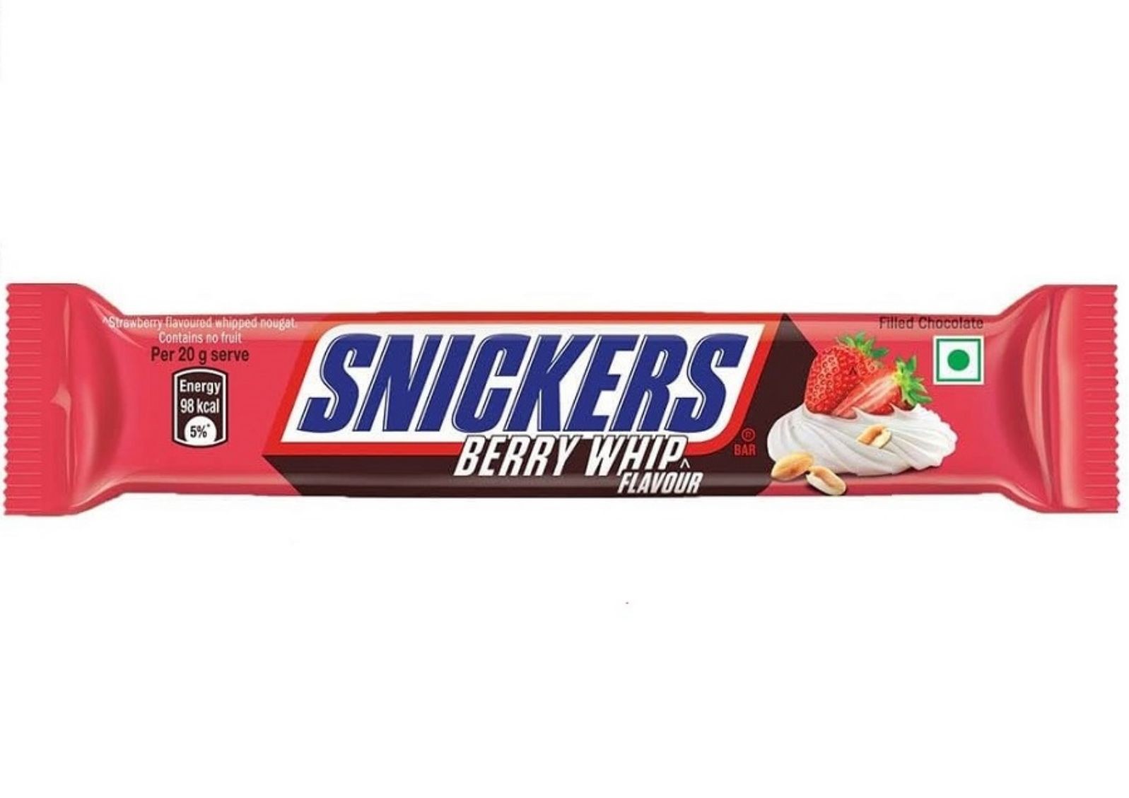 Questa non è solo una Candy Bar ma è anche un vero e proprio concentrato di piacere. Si perchè lo Snickers alla Fragola e Panna ha tutto quello che dovrebbe avere una barretta. Cioccolato al latte, torrone, caramello, noccioline tostate e, l'ingrediente principale, una crema di fragole e panna che lo farcisce interamente. Questa gustosa variante di Snickers non può mancare nelle tue esperienze di gusto da ricordare.