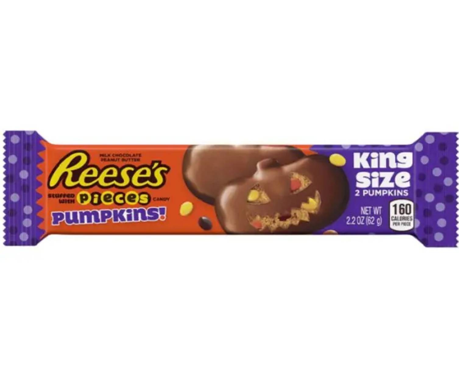 Solo ad Halloween la Reese's ci regala questi splendidi prodotti. Ovvero la sua classica Peanut Butter Cup che questa volta prende le sembianze di un sinistro volto di zucca malefica. Questi Reese's Pumpkin oltre al delizioso cioccolato al latte sono ripieni di cremoso burro di arachidi e pezzetti di confettini Reese's Pieces che ti daranno una piacevole senzasione di croccante. Questo Halloween sarà davvero un privilegio per pochi dopo aver detto "dolcetto o scherzetto?" ricevere questa goduria!