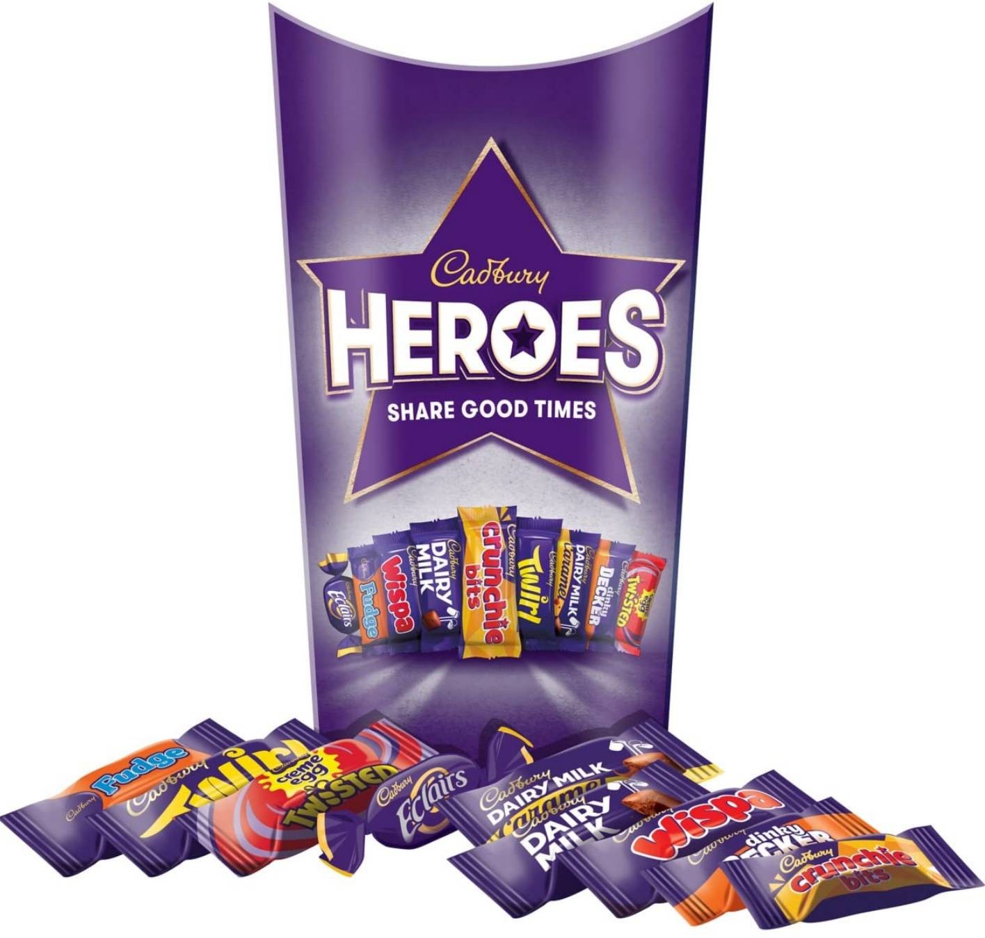 Un mix di barrette Cadbury disponibile in un cartone ideale da condividere. I fan degli eroi adorano frugare e rimescolare nella scatola per trovare i loro preferiti. Include: Cadbury Dairy Milk, Cadbury Dairy Milk Caramel, Wispa, Eclair, Fudge, Creme Egg, Dinky Decker, Crunchie e Twirl. POCHI PEZZI DISPONIBILI!