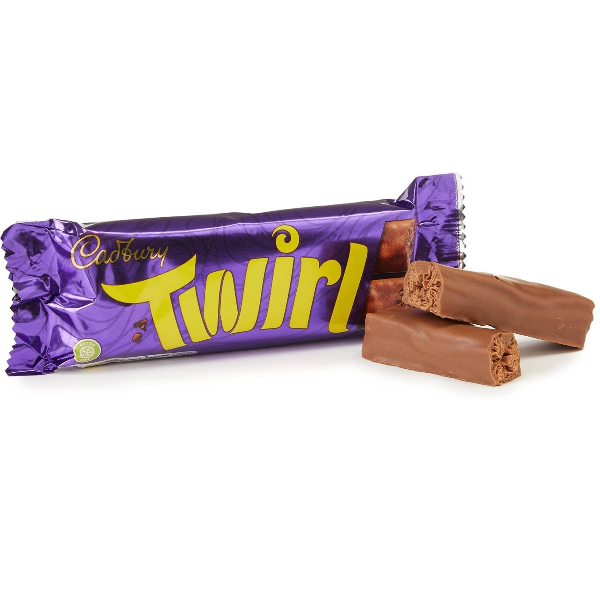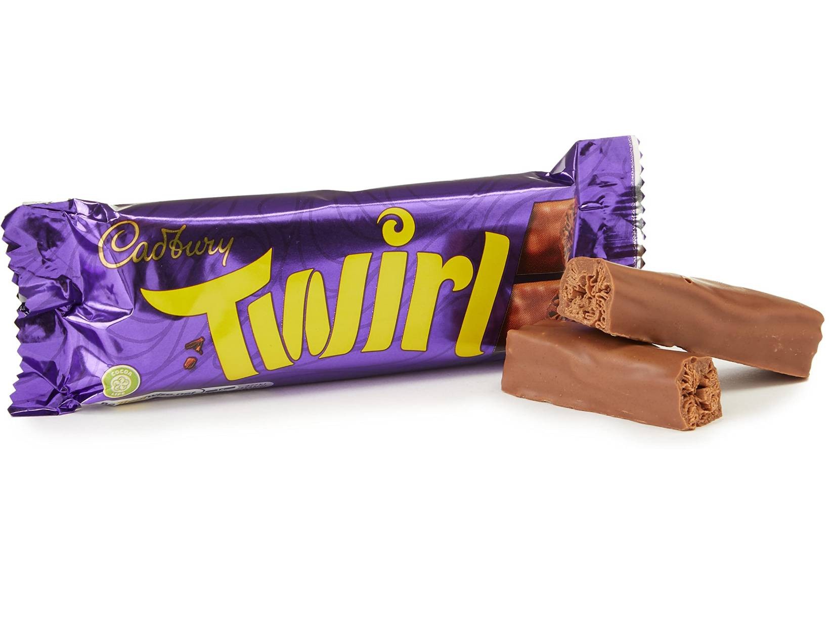 Due barrette di cioccolato al latte twirl ricoperte di morbido cioccolato al latte Cadbury. Twirl è stato originariamente lanciato in Irlanda come prodotto a una barretta ed è diventato un prodotto a due barrette al momento del lancio nel Regno Unito. Un fatto che spesso sorprende è che Twirl negli ultimi anni è stata la tavoletta di cioccolato più venduta nel mercato del Regno Unito!