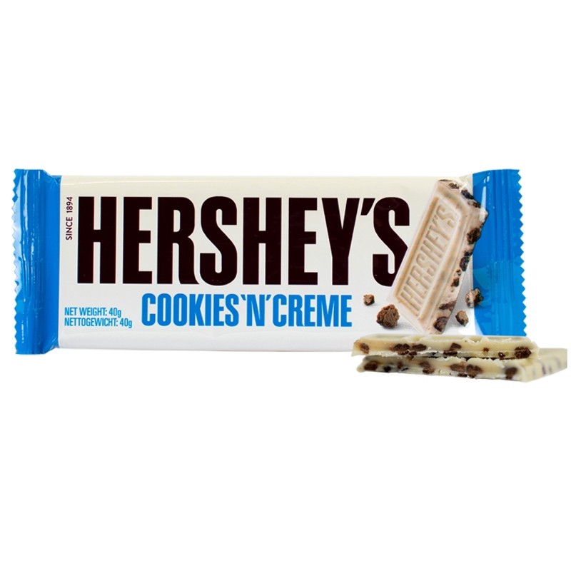 Ma di cosa stiamo parlando?? La Hershey's Cookies & Creme è una barretta di finissimo cioccolato bianco con all'interno dei veri e propri pezzi di Biscotti Oreo!! Qualcosa di veramente indescrivibile e unico. Chi ama questo tipo di biscotti e la cioccolata più famosa d'america non può fare a meno di provare questa versione almeno una volta nella vita. Poi si può essere felici!!