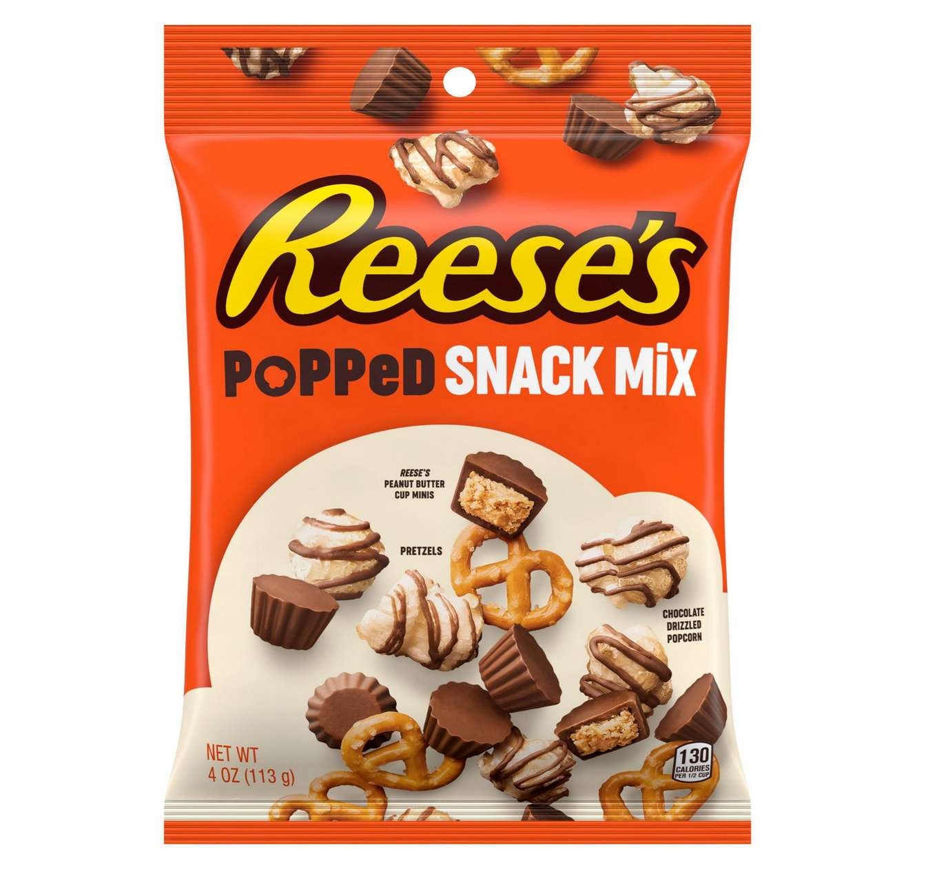 Sei indeciso tra dolce e salato? I Reese's Popped Snack Mix sono la risposta ai tuoi dubbi. Questa unione unica di sapori è il mix perfetto tra i Peanut Butter Cups di Reese's, popcorn croccanti, pretzel salati e gustosi M&M's al cioccolato. Insomma c'è davvero di tutto.
