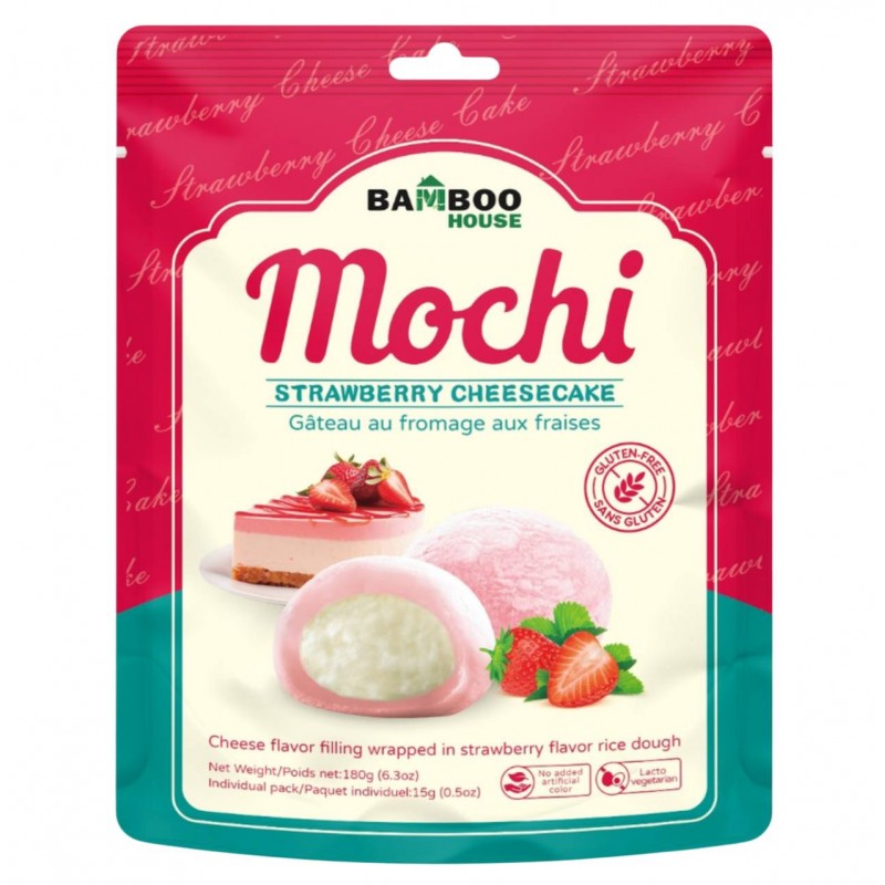 Il Bamboo House Strawberry Cheesecake Flavor Mochi è un piccolo capolavoro di morbidezza e gusto: un cuore cremoso al sapore di cheesecake e fragola, avvolto da una vellutata pasta di riso dolce che si scioglie in bocca. Solo su cibousa!