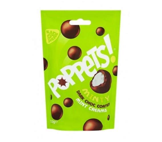 Poppets Dark Chocolate Coated Mint Creams 130 g è una selezione di cioccolatini con cuore cremoso alla menta avvolti in un intenso strato di cioccolato fondente. Il contrasto tra la freschezza della menta e la ricchezza del cacao offre uno snack rinfrescante e goloso, adatto sia per una pausa di gusto durante il giorno sia da condividere con amici e familiari.