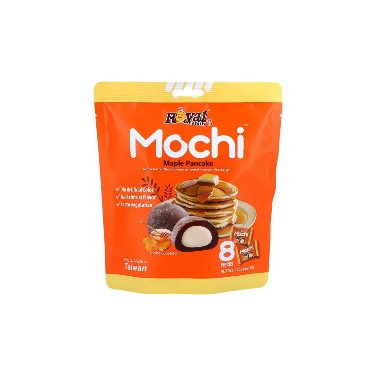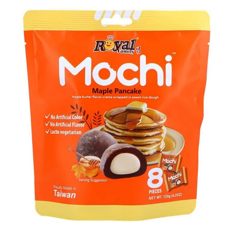 Mochi al gusto di sciroppo d'acero 120g un incontro irresistibile tra tradizione orientale e gusto nordamericano. I Royal Family Maple Pancake Mochi racchiudono una morbida pasta di riso glutinoso con un cuore dal delizioso sapore di pancake e sciroppo d'acero, dolce, avvolgente e leggermente caramellato. La consistenza è soffice ed elastica all'esterno, con un ripieno cremoso che sprigiona tutto l'aroma tipico del maple syrup ad ogni morso. La confezione da 120g è perfetta per una pausa golosa, da condividere o da gustare come dessert originale. Morbidi, profumati e sorprendenti: un piccolo viaggio di gusto in stile fusion.