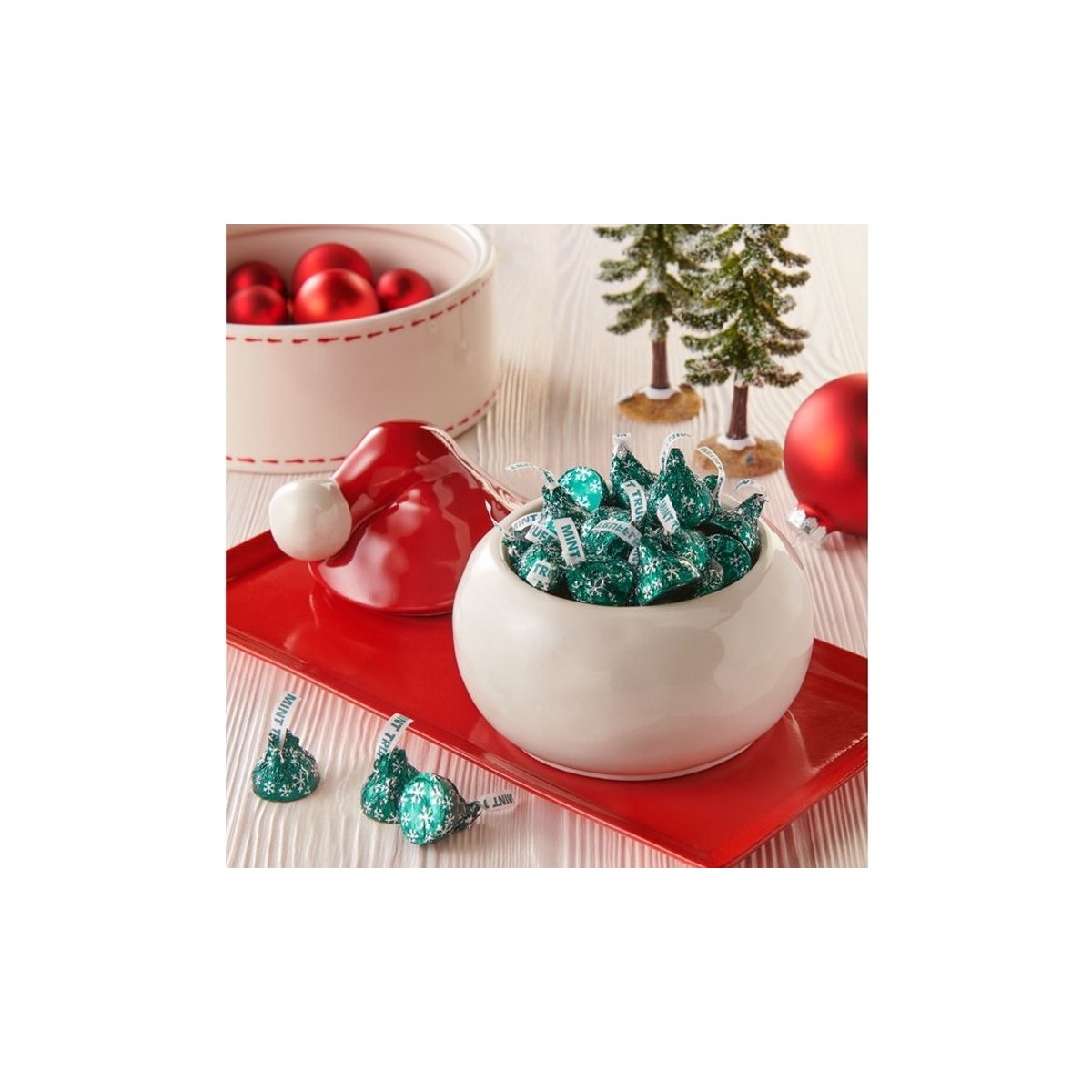 Per le feste natalizie, offriti il top dei cioccolatini americani. Gli Hershey's Christmas Kisses Mint Truffle sono dei deliziosi cioccolatini semi-fondenti a forma di gocccia ripieni di una avvolgente crema alla menta. Questi iconici cioccolatini americani si trasformano per le feste con un incarto verde con fiocchi di neve bianchi a dir poco stupendo. Puoi decorare il tuo albero, oppure la tua tavola natalizia con uno stile davvero inconfondibile. E poi diciamocelo, il cioccolato fondente con la menta di sta davvero bene! Confezione grande con tantissimi Kisses all'interno.
