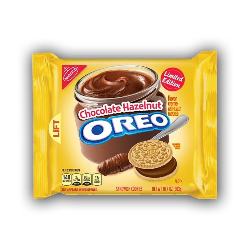 In edizione limitata solo per pochi giorni sono disponibili i Nabisco Oreo Biscotti Cioccolato alle Nocciole. Questa versione è davvero irresistibile grazie alla crema di nocciole (tipo Nutella) all'interno di 2 biscotti Oreo Golden alla vaniglia. Eh si, la Nabisco non smette mai di sorprenderci per la gioia dei più golosi!