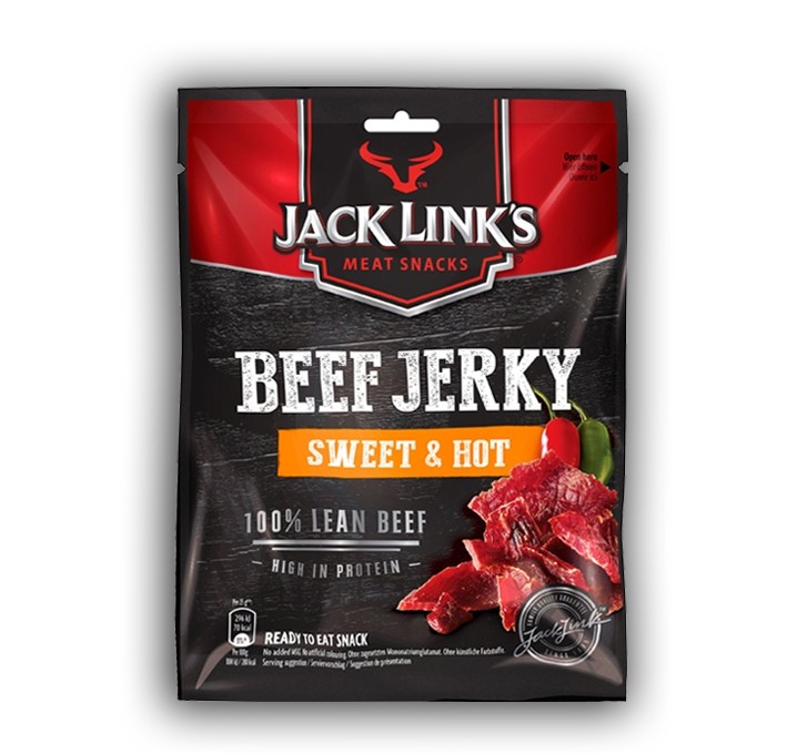 Se pensate agli snack americani non potete non pensare ai Beef Jerky di Jack Link's. I più famosi straccetti di carne essiccata speziata arrivano anche in italia per farvi assaporare qualcosa di completamente diverso dal solito. Il gusto Sweet & Hot è quell'agrodolce piccante tipicamente Statunitense. Portate il vostro spuntino proteico sempre con voi!