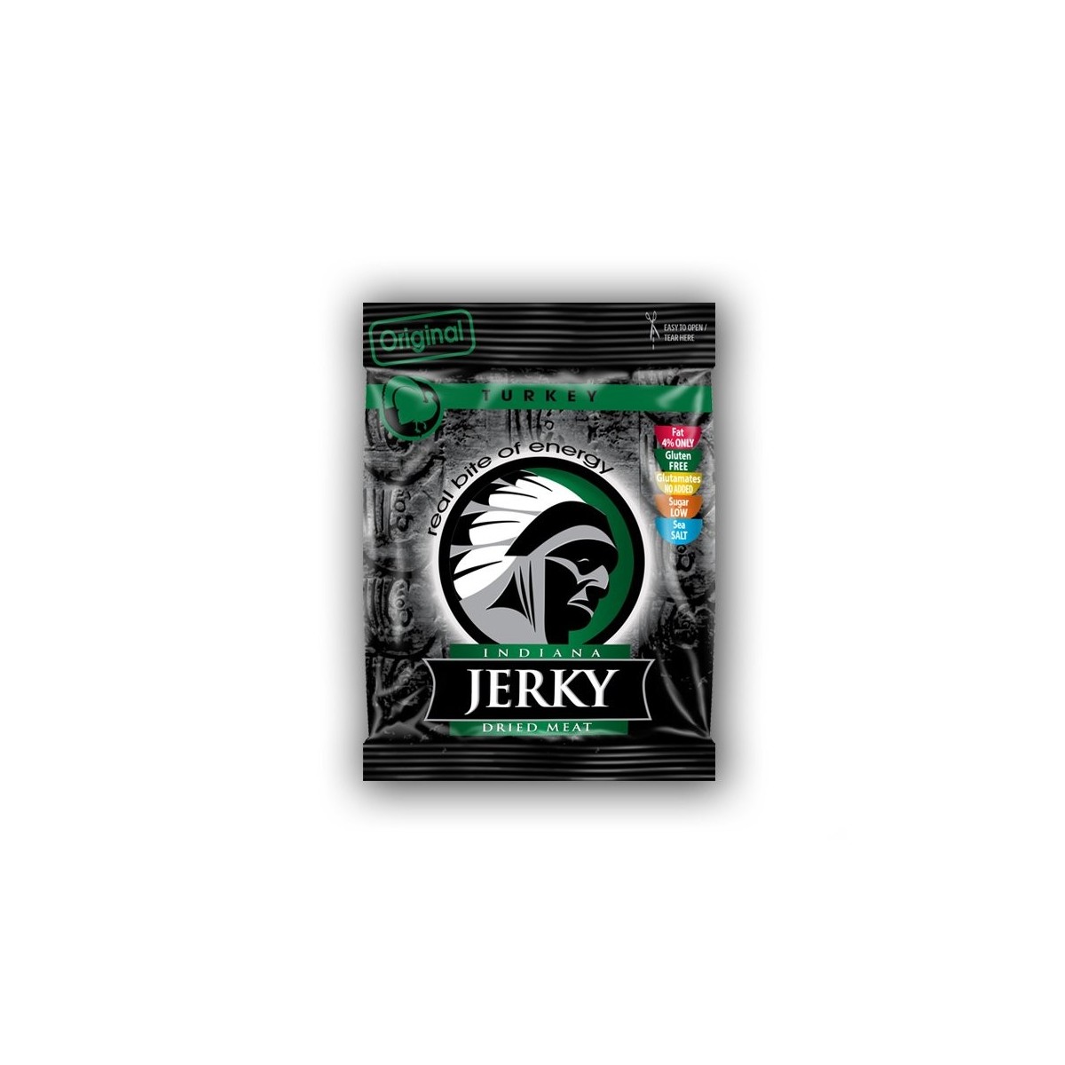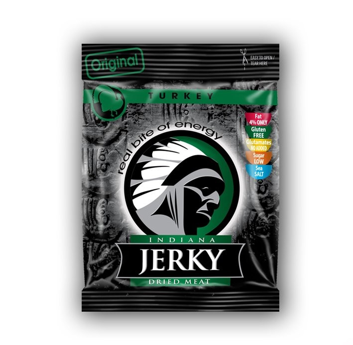 Il Turkey Jerky Original Indiana è uno snack a base di carne di Tacchino essiccata e speziata. Questi straccetti sono una fonte proteica molto elevata. Sono dunque indicati soprattutto a chi fa attività fisica come la palestra poiché hanno anche una quantità limitata di grassi. Sei un tipo sportivo? Allora non puoi non portare questo spuntino sempre con te!
