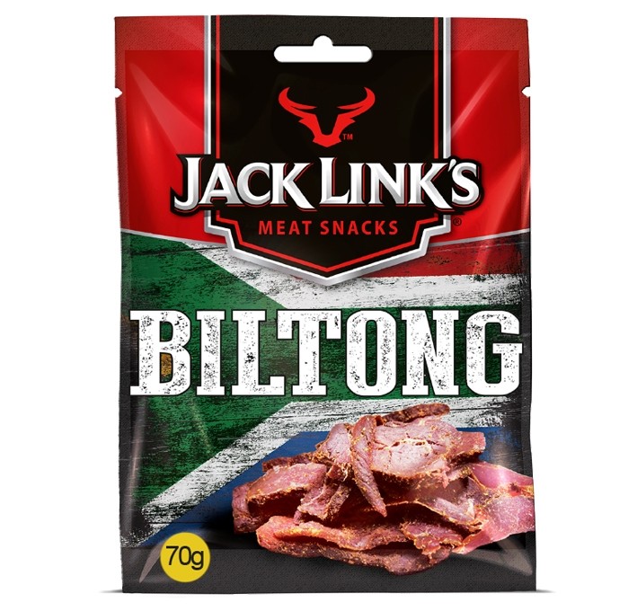 Finalmente è arrivata la Jack Link's Beef Jerky Biltong da ben 70 grammi invece che il classico pacchetto da 25 grammi. La speciale e antica tecnica di essiccazione della carne "Biltong" proviene dalla cucina afrikaneer e più precisamente dal Sudafrica, Zimbabwe e Namibia. Si tratta di una saporitissima carne tagliata a striscionine non troppo sottili, fatta essiccare all'aria aperta e aromatizzata con varie spezie tra cui coriandolo, pepe, paprica, chiodi di garofano, peperoncino di cayenna. Uno snack davvero energetico e ricco di proteine, ben 53 grammi per 100 grammi di prodotto e realizzata con carne magra 100%.