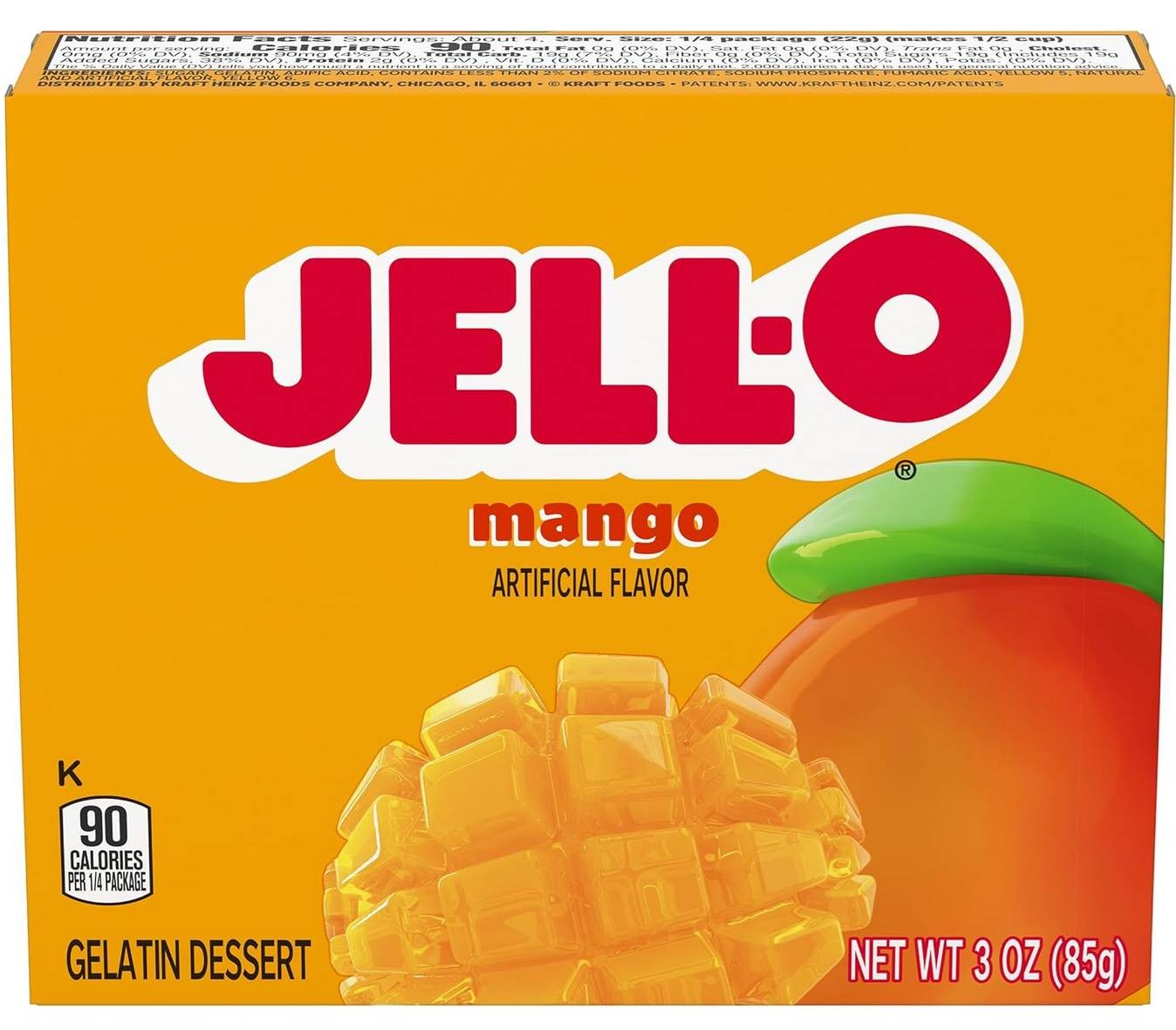 Porta un'esplosione tropicale nella tua giornata con la Jell-O al gusto di mango, la gelatina più iconica d'America in una versione irresistibilmente fruttata!