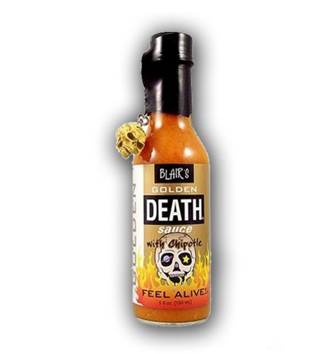 Parliamo sempre di una delle salse piccanti più potente del pianeta! La Blair's Golden Death Sauce è particolarmente adatta per condire Hamburger e Wurstel in quanto contiene una piccola percentuale di senape oltre che un mix di peperoncini profumatissimo che danno un gusto ultra piccante. La chicca assoluta di questa salsa è la presenza dello Scotch Bonnet, un peperoncino che nella scala Scolville è quotato tra 100,00 e 350,00 originario dei Caraibi. Se sei in cerca di sensazioni forti questa salsa è fatta apposta per te! Carinissimo portachiavi con teschio Blair's in omaggio.