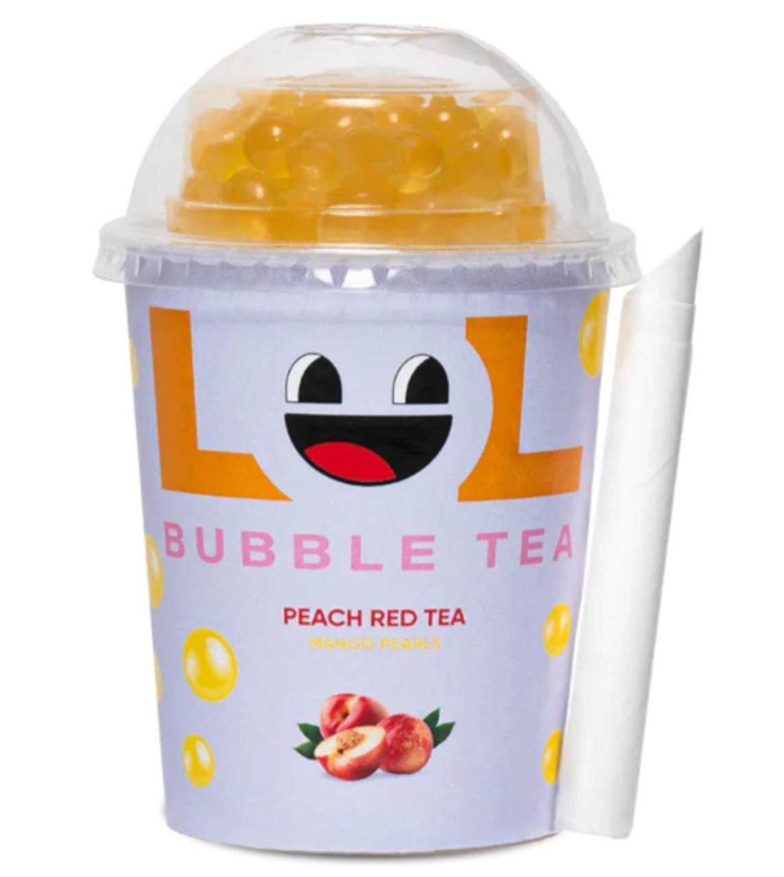 Il Bubble Tea alla pesca con bubbles al mango unisce la dolcezza delicata della pesca con l'esplosione tropicale delle perle al mango, che scoppiano in bocca regalando una sensazione unica e irresistibile.
